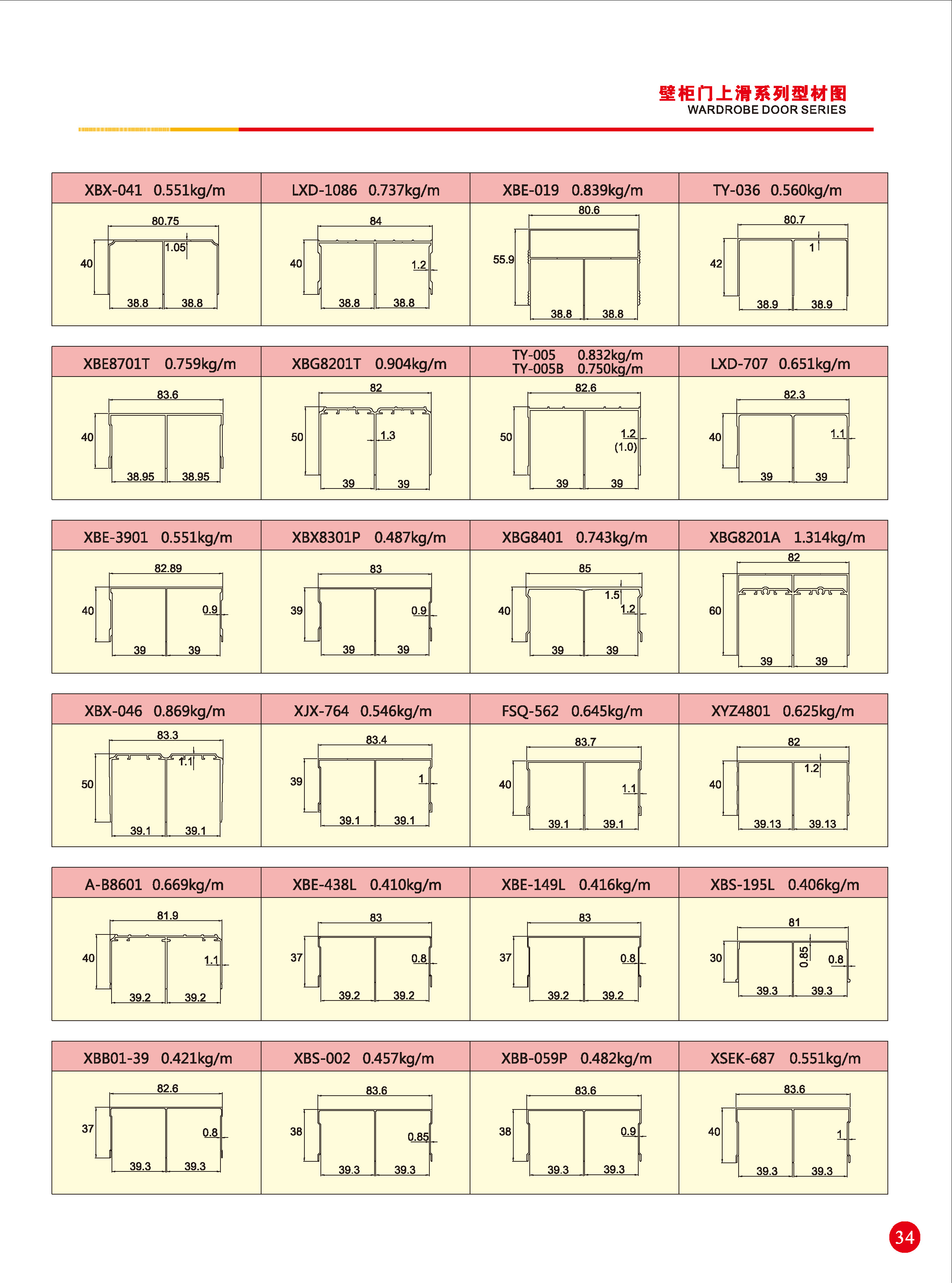 移门通用系列铝型材