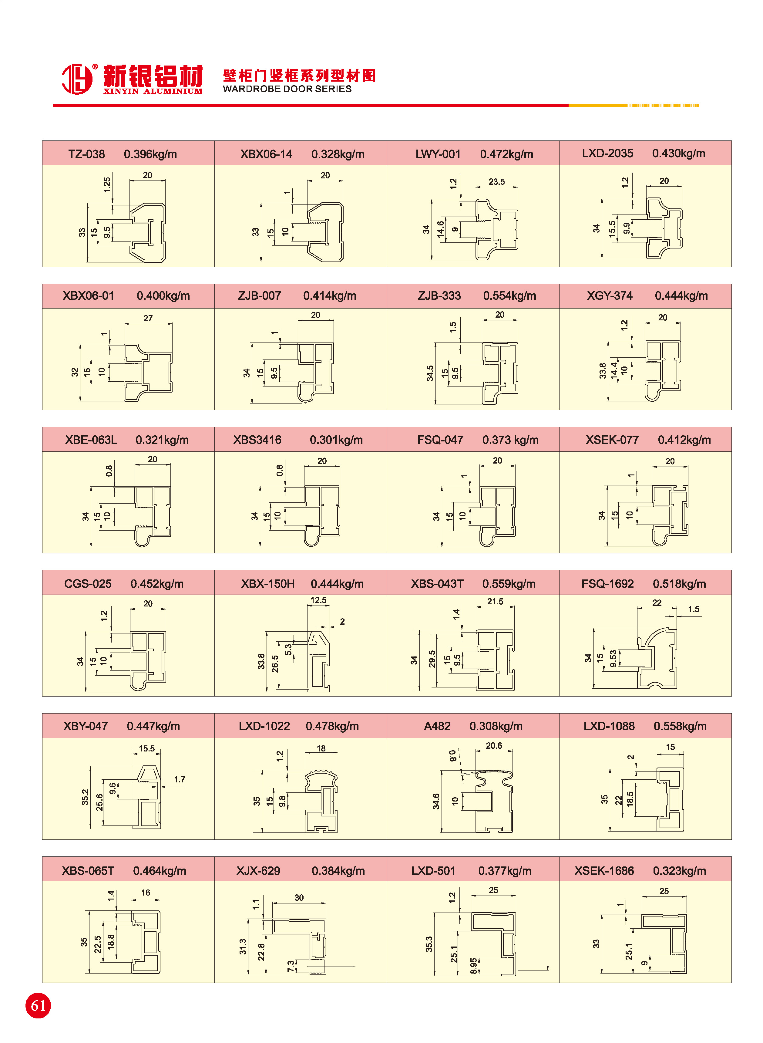 移门通用系列铝型材
