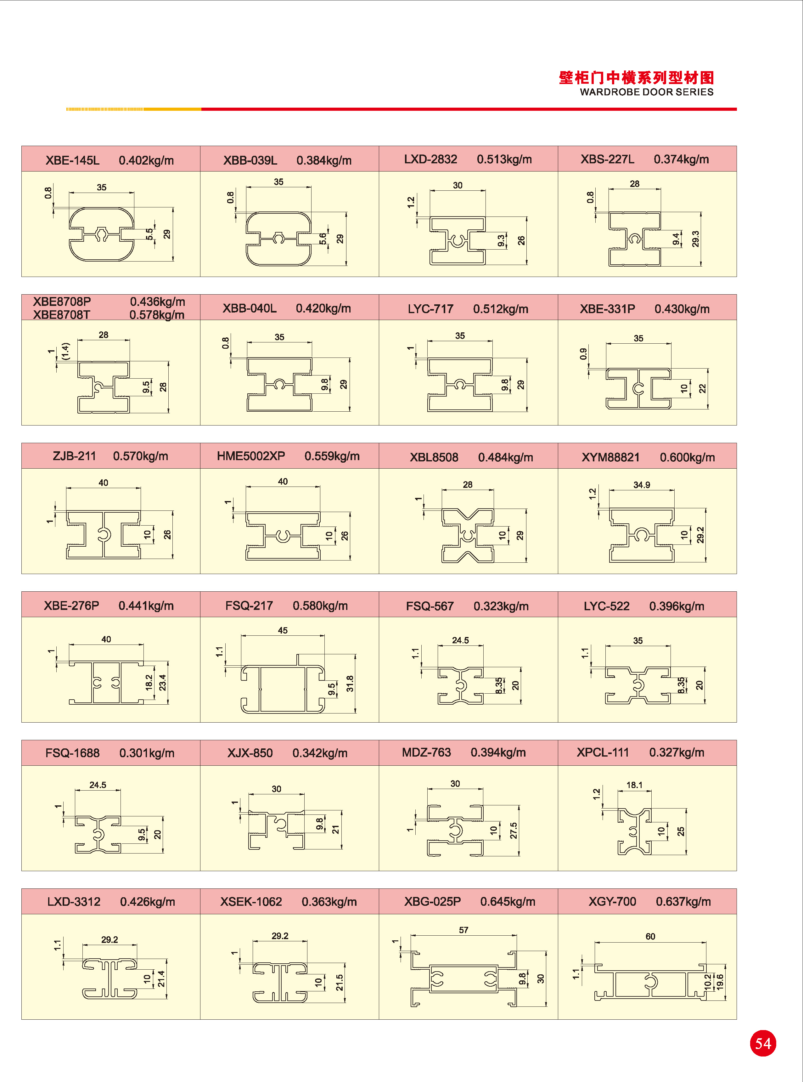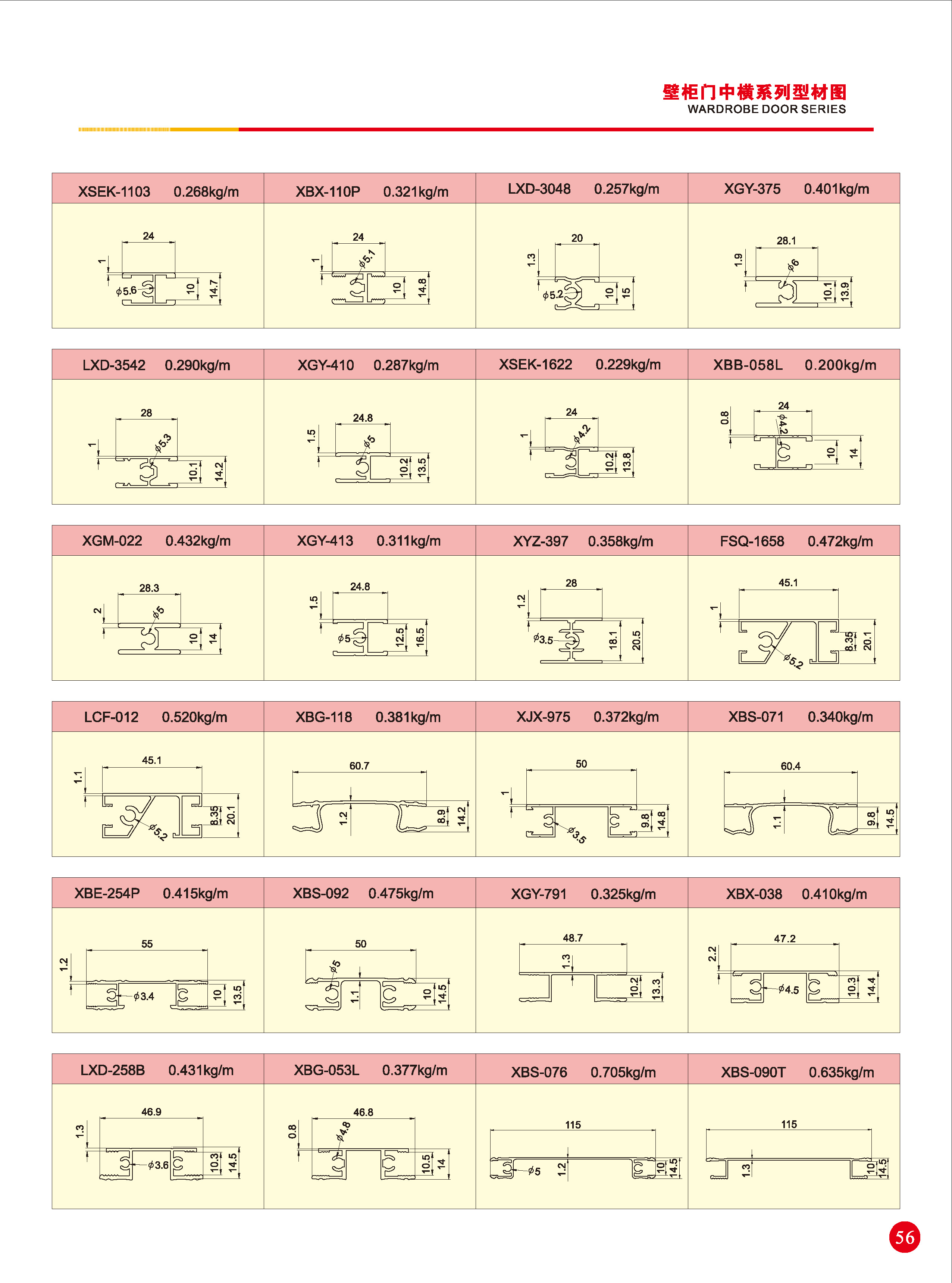 移门通用系列铝型材