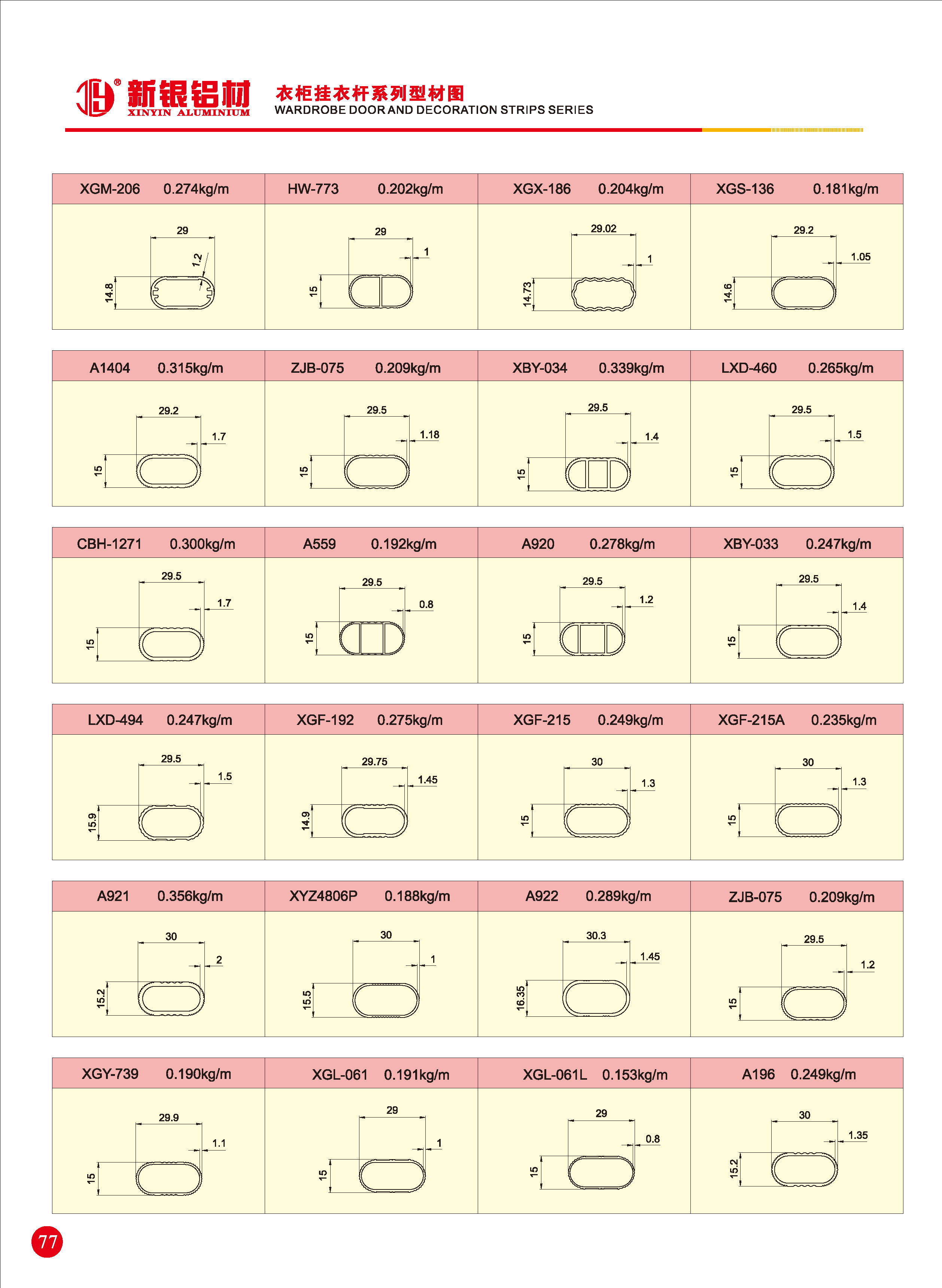 移门通用系列铝型材